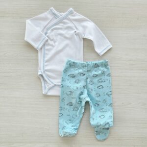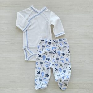 Este set de interiores es muy práctico a la hora de cambiar a tu bebé pues el body se abre totalmente. El pantalón tiene un elástico muy suave que no ajusta en la cinturita del bebé.