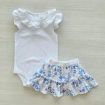 Conjunto Body más falda Flores Celeste