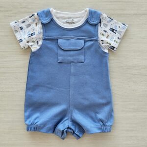 Set de 2 piezas para bebes desde Recién naciditas hasta la talla 12 meses. El algodón es ultra fresco y suavecito. Tiene un bobito aplicado en el cuello y la falda tiene un calzoncito interior.