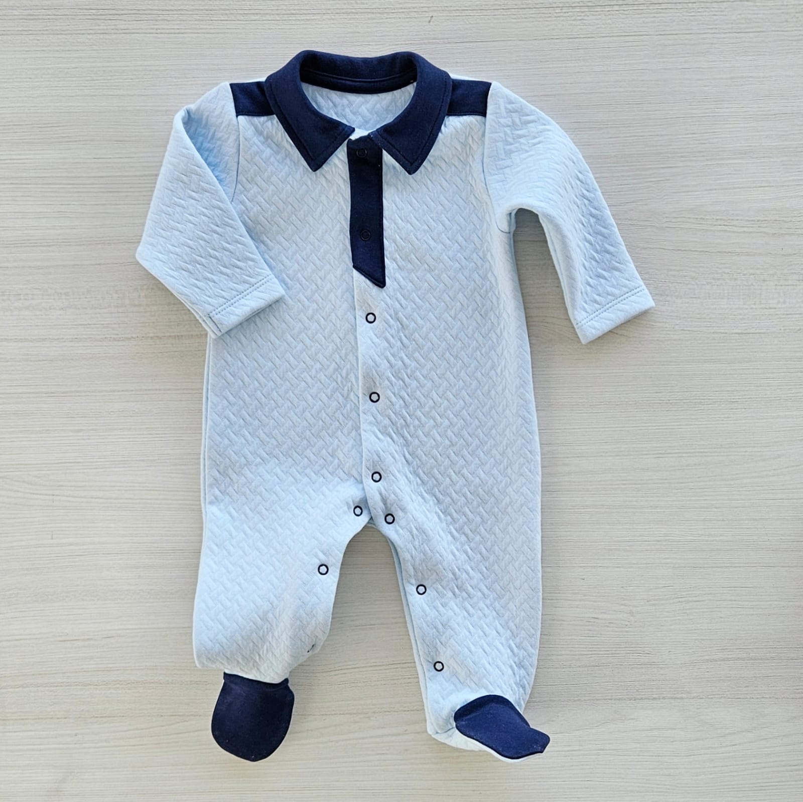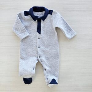 Enterizo de manga larga en una suave tela canasta. Con cuello. Cierre con broches a presión
